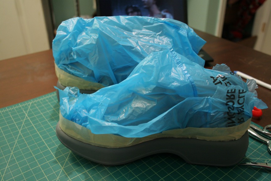 And hooray, everything seems to be working fine! It is very hard to photograph something double sided like this though! This project seems like it will be a good continuation of Leoh's Coat: now with both sides patchworked together. But similar idea, gray/black outer, dyed bits of silk insides.